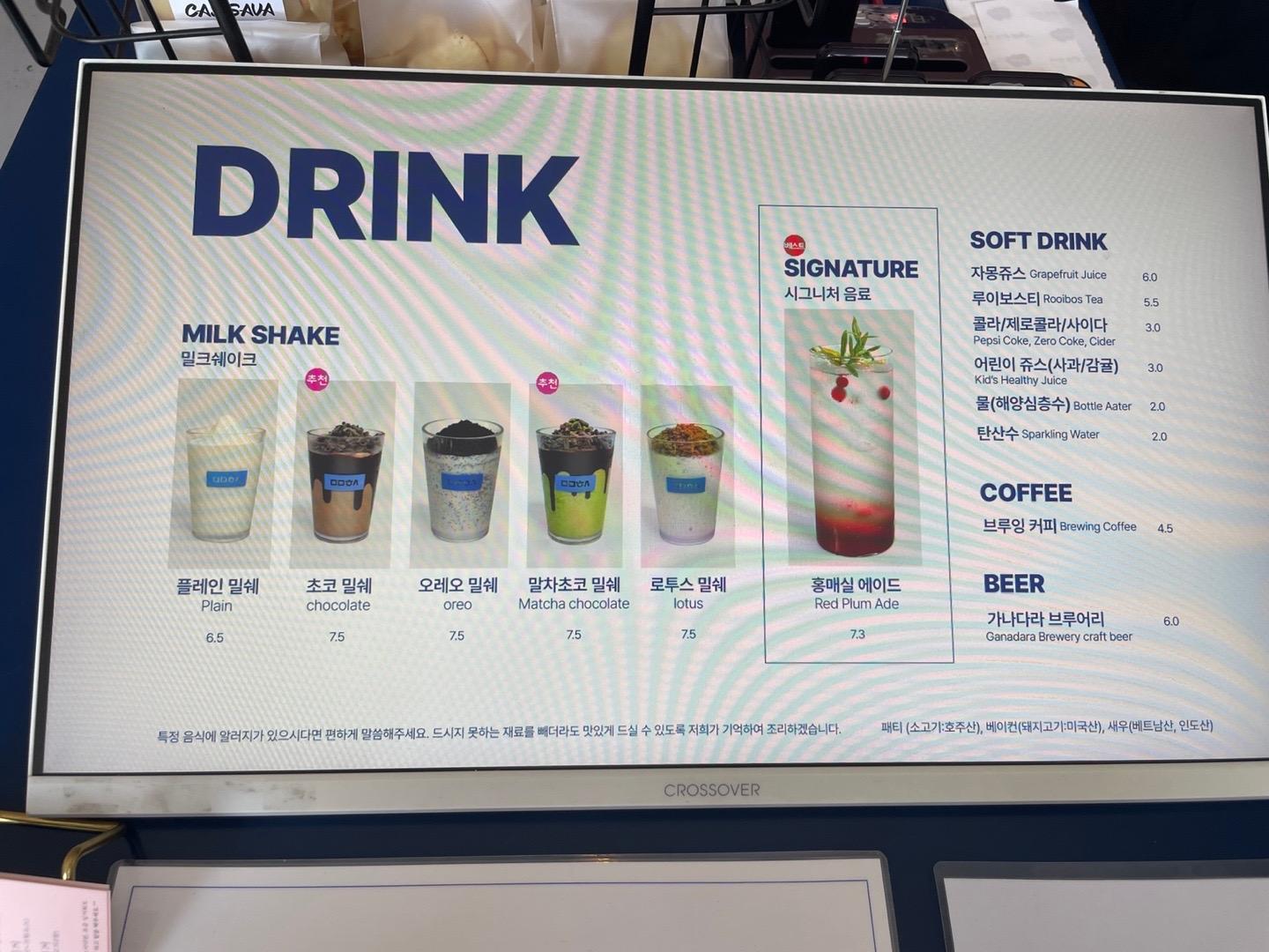 버거 전문점이라 버거 종류가 다양하고